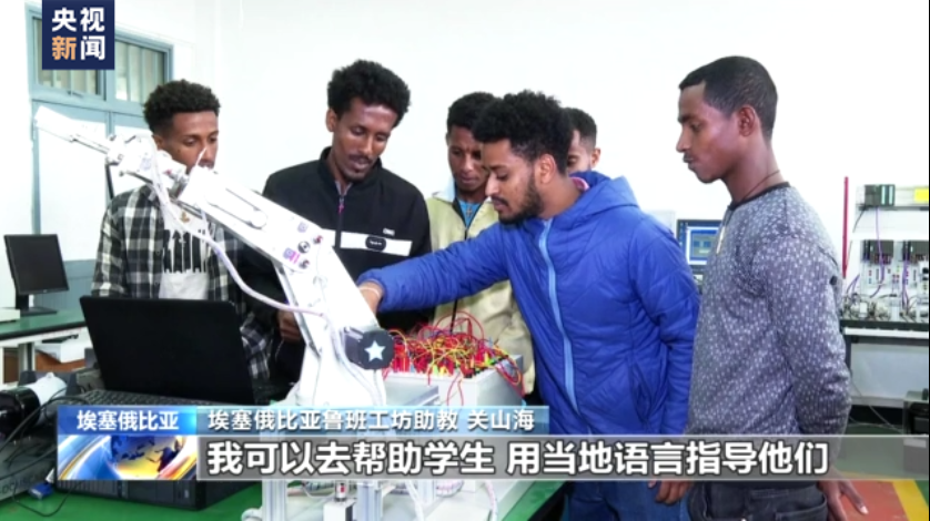 埃塞俄比亚鲁班工坊助教 关山海:我真的很兴奋,因为现在我真的可以在这里工作了,不是作为学生,而是老师。我可以去帮助学生,用当地语言指导他们,有些学生不擅长英语或其他语言。