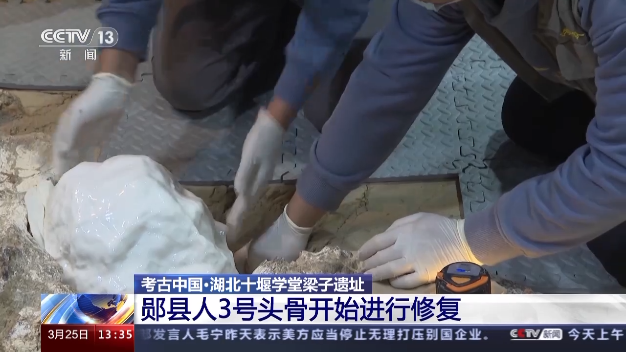 湖北十堰学堂梁子遗址 “郧县人”3号头骨开始进行修复
