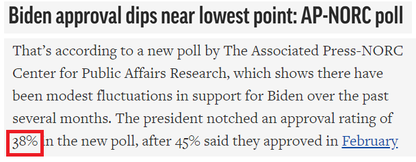 美联社与芝加哥大学公共事务研究中心联合进行的另一项最新民调显示,由于很多人认为拜登政府在面对银行业关闭和通胀居高不下方面表现不佳,美国总统拜登的支持率出现下降,仅为38%,接近他担任总统以来的最低点。
