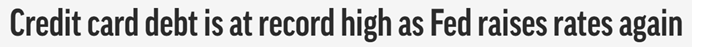 与此同时,随着美联储再次提高利率,美国人信用卡债务已经达到历史新高。