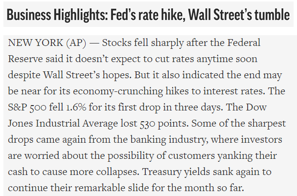 实际上,在宣布加息当天,美联储自己将美国2023年实际国内生产总值(GDP)增长预期从之前的0.5%下调至0.4%;将美国2024年GDP增长预期从之前的1.6%下调至1.2%。