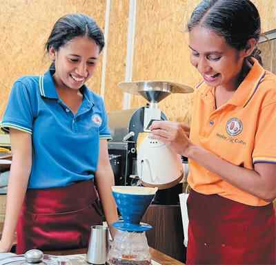 东帝汶全盛AR咖啡工作人员正在冲制咖啡。 本报记者 孙广勇摄