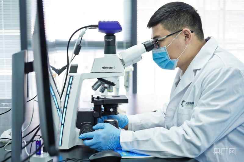 李磊在江门双碳实验室里观察细胞(央广网记者 官文清 摄)