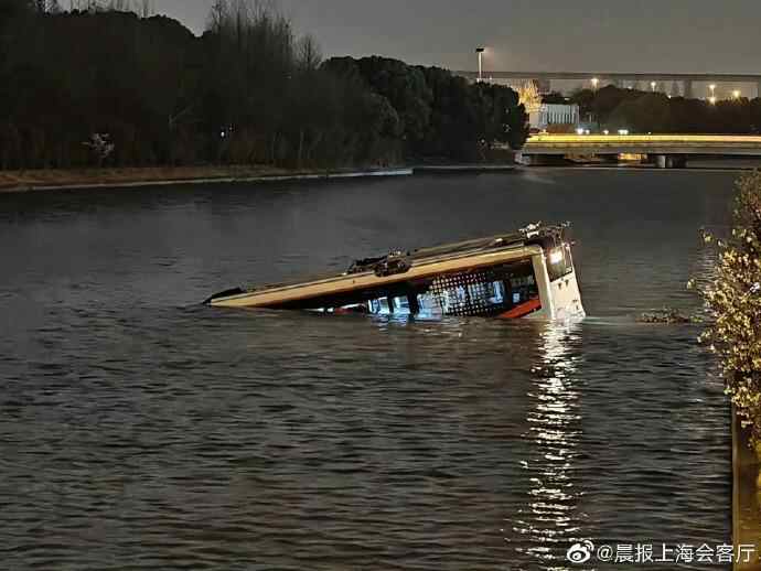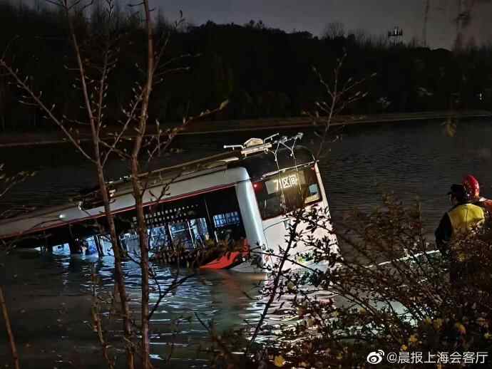 3月26日晚,有上海网友发帖称,一辆巴士坠河,网友发布的照片显示,一辆大巴车前半截已没入河中,后半截尚处于水面上,公交车后的显示屏上有71区间字样。