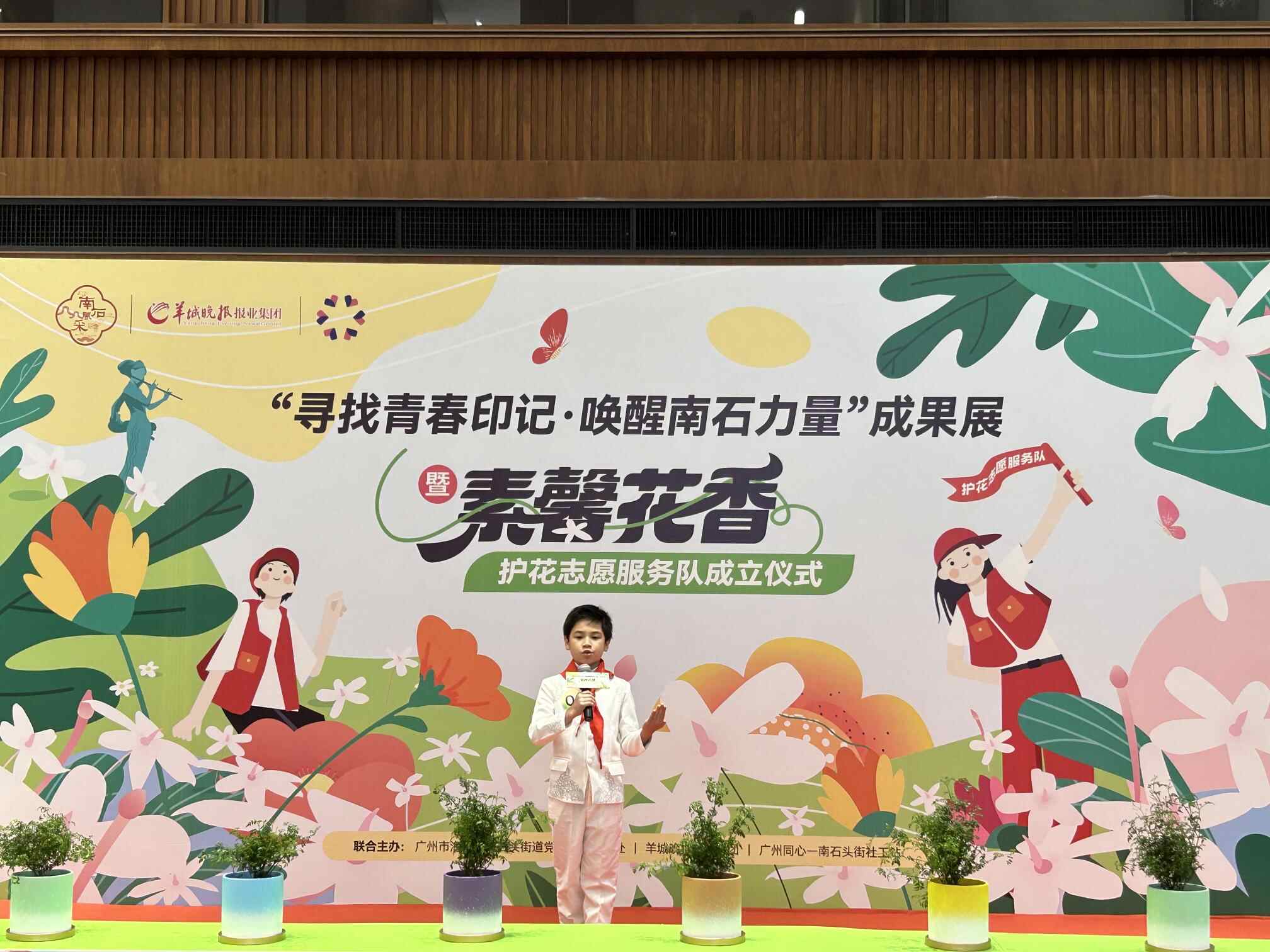 3月26日上午,由广州市海珠区南石头街道党工委、办事处,羊城晚报报业集团及广州同心——南石头街社工站联合主办的“寻找青春印记·唤醒南石力量”成果展暨“素馨花香”护花志愿服务队成立仪式在海珠区星汇海珠湾展销中心举行,现场同时还发布了《南石头街道旅游别册》。