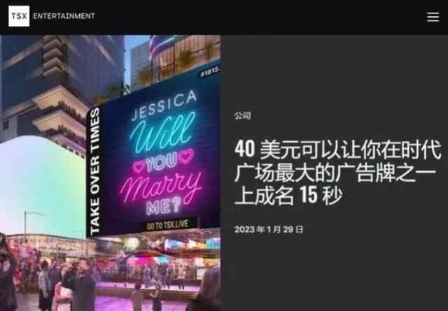 TSX是多伦多证券交易所集团的全称,也是这块大屏背后的公司“TSX 娱乐”的拥有者。官网介绍说,TSX大屏是为世界上最具创新精神的艺术家和品牌提供的娱乐平台。作为世界上行人流量最大的地方,时代广场每天接待超过40万游客,每年接待超过1.34亿游客,除夕夜的全球观众人数超过10亿。“我们处于娱乐的中心,上演着世界上最大的流行文化时刻,并接触到世界各地的粉丝。”