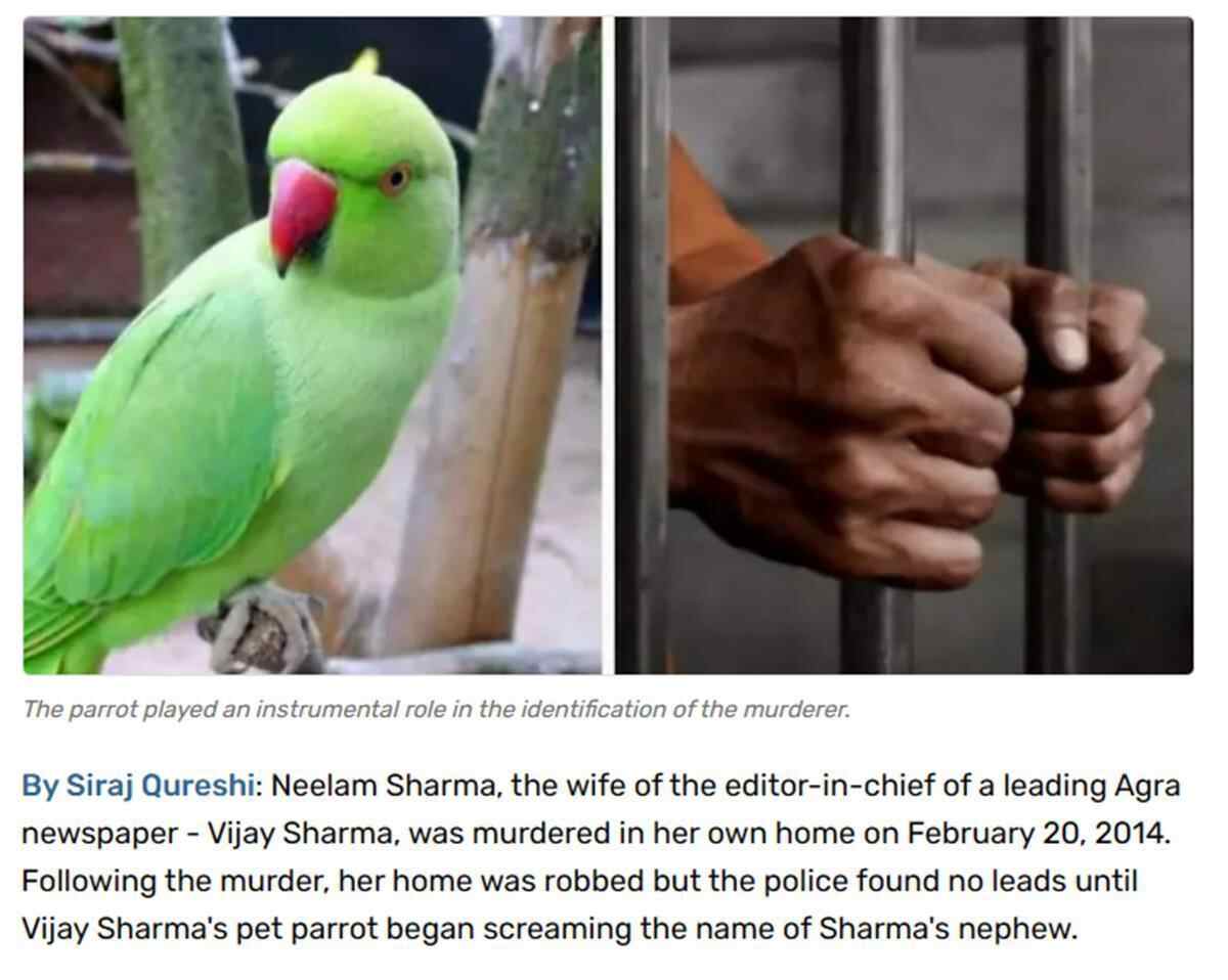 印度鹦鹉目睹凶杀案大喊凶手名字,协助警察破案