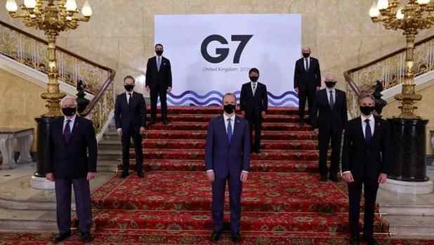 2021年5月,七国集团外长会在伦敦召开,图为与会外长们合影
