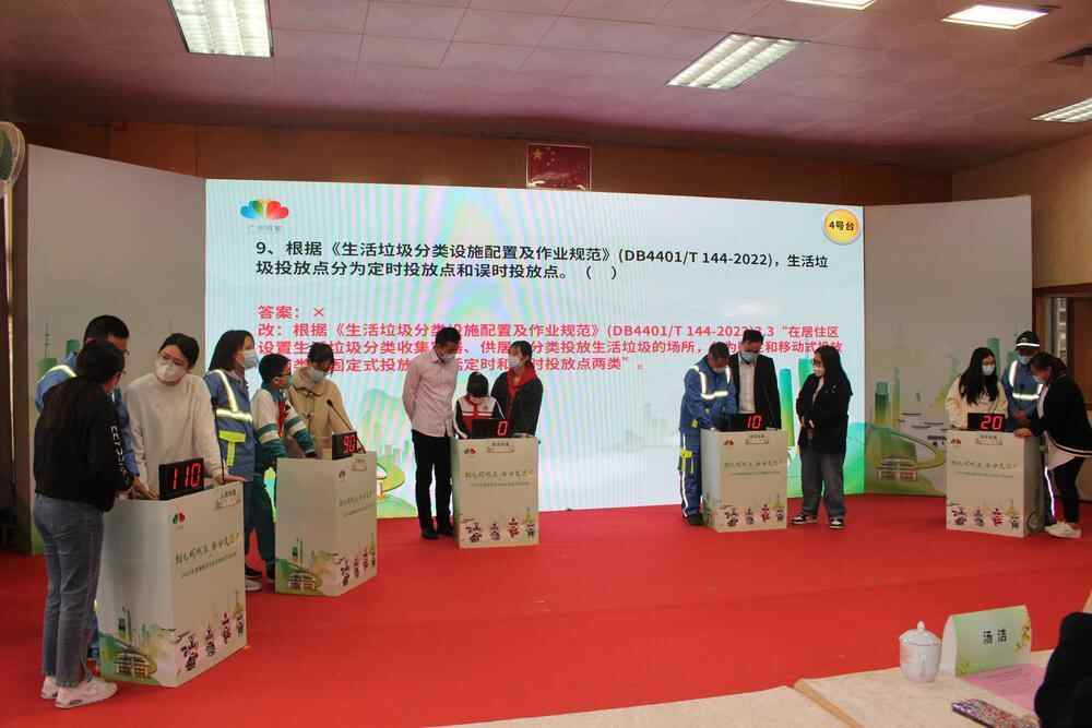 为鼓励小学生们掌握垃圾分类知识,学习优秀环卫工人的工匠精神,越秀区18条街道各组织1支包括小学生、垃圾分类指导员、环卫工人组成的队伍,参与开放体验活动中的“垃圾分类知识大比拼”环节,抢答垃圾分类题为自己所在街道争光。