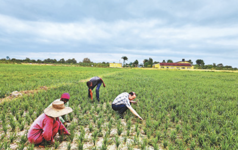 中国援坦桑尼亚农业技术示范中心的专家和当地农户一起清除稻田里的杂草。(图源:中国援坦桑尼亚农业技术示范中心)
