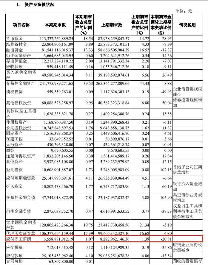 多家券商披露,应付职工薪酬下降