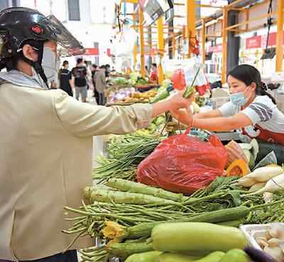 安徽省淮南市通过“智慧菜市场”建设,打造15分钟便民生活圈,解决好新城区群众买菜难、老城区菜市场环境差等问题。图为市民在干净、整洁的高新区邻里中心农贸市场买菜。 陈 彬摄(人民图片)