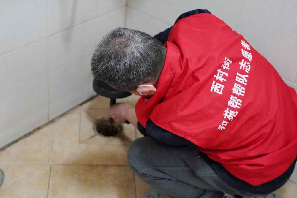 荔湾区西村街和苑帮帮队志愿者上门为社区长者疏通下水道