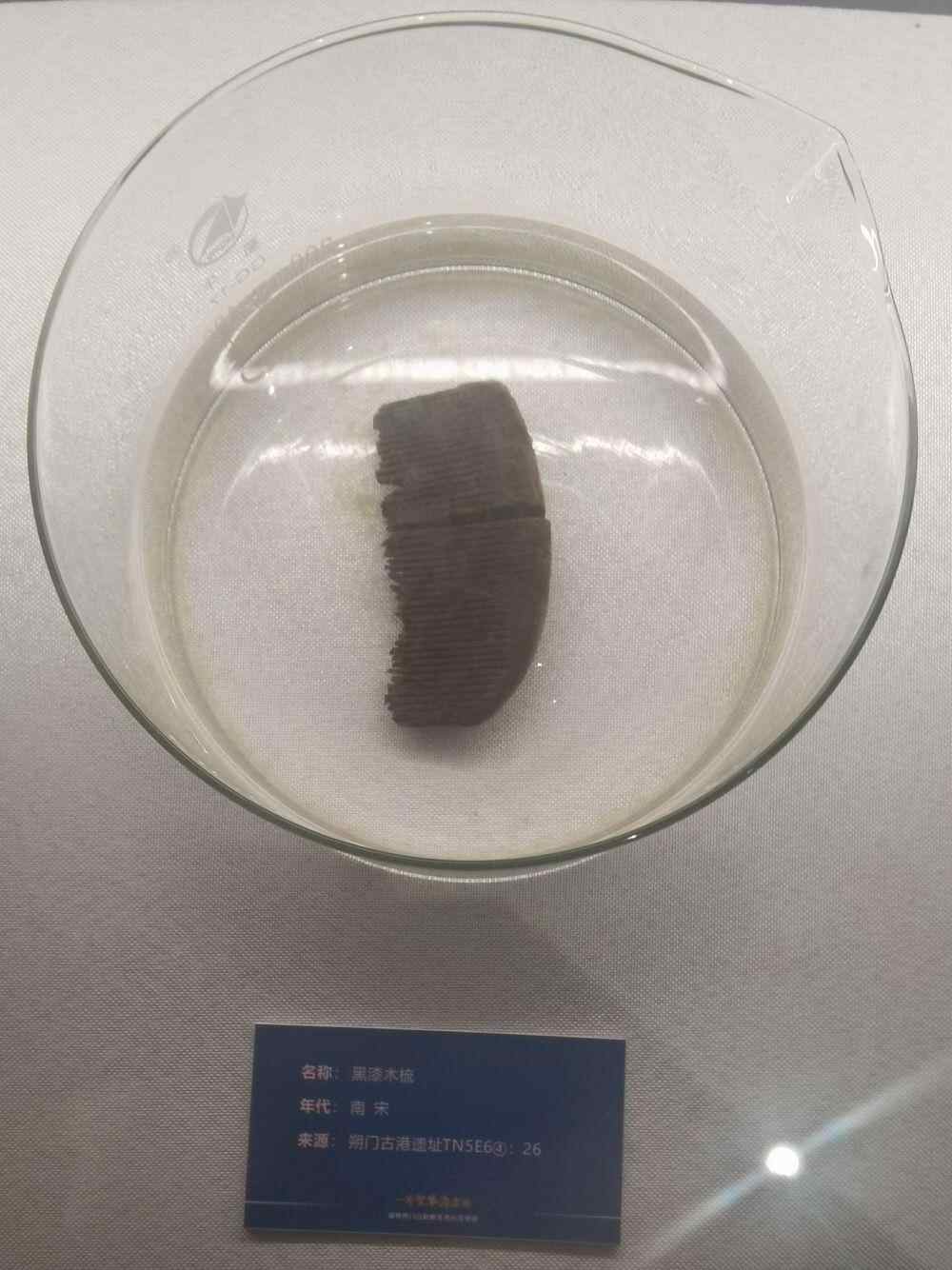 温州朔门古港遗址发掘出的黑漆木梳(2023年2月23日摄)。新华社记者 王俊禄 摄