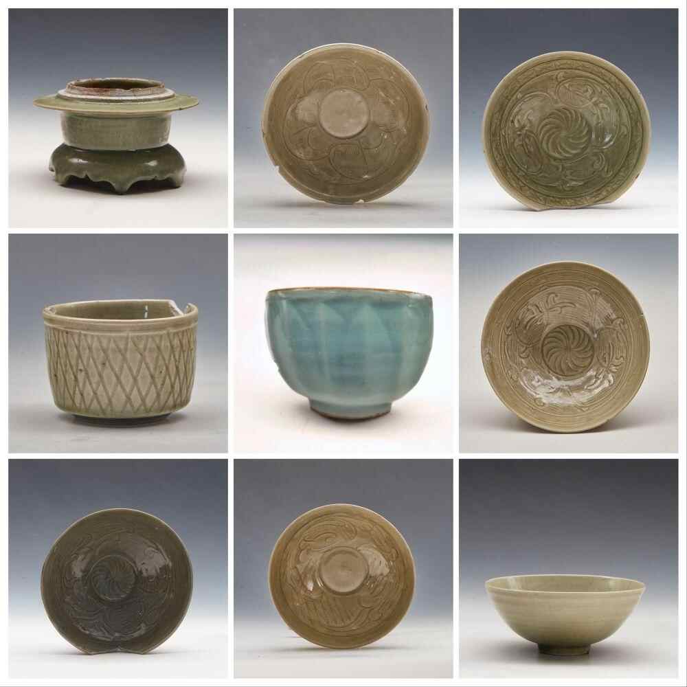 温州朔门古港遗址发掘出的龙泉窑瓷器(拼版照片)。新华社记者 翁忻旸 摄