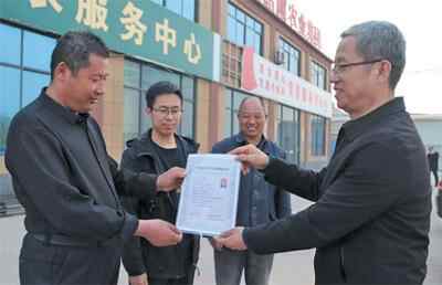 山东省平原县乡村振兴服务中心工作人员为农民农艺师王笃春(左一)颁发证书。辛凯摄