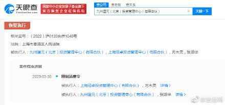 天眼查App显示,近日,九州建元(北京)投资管理中心(有限合伙)及其主要负责人张颂华新增一则限制消费令,涉及非法吸收公众存款罪案件,申请人为上海市奉贤区人民法院刑事审判庭,一同被限制消费的还有上海冠卓投资管理中心(有限合伙)及其执行事务合伙人方木灵。
