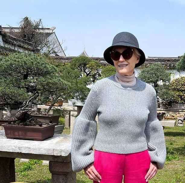 刚开始穿的是鄂尔多斯产的西装,后来换上了中国生产的羊毛衫和颗粒绒大衣,妥妥成了接地气的中国大妈。不得不说,梅耶真是懂得入乡随俗!