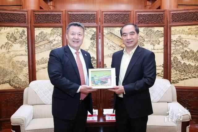 北京大学校长龚旗煌会见澳门城市大学校长刘骏。图片源自北京大学新闻网