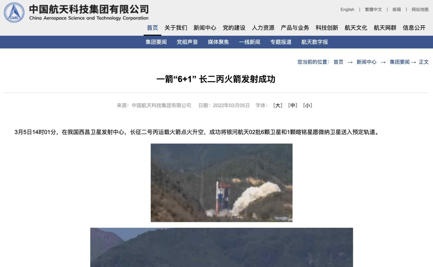 据光明日报报道,2022年3月5日,我国在西昌卫星发射中心用长征二号丙运载火箭,成功将我国首次批量研制的6颗低轨宽带通信卫星——银河航天02批批产卫星送入预定轨道,此次任务还搭载发射了一颗遥感卫星。6颗通信卫星分别被冠名为“南通一号”“一土号星愿”“宣城一号”“北邮-银河号”等,一颗遥感试验卫星被命名为“暄铭星愿”卫星。