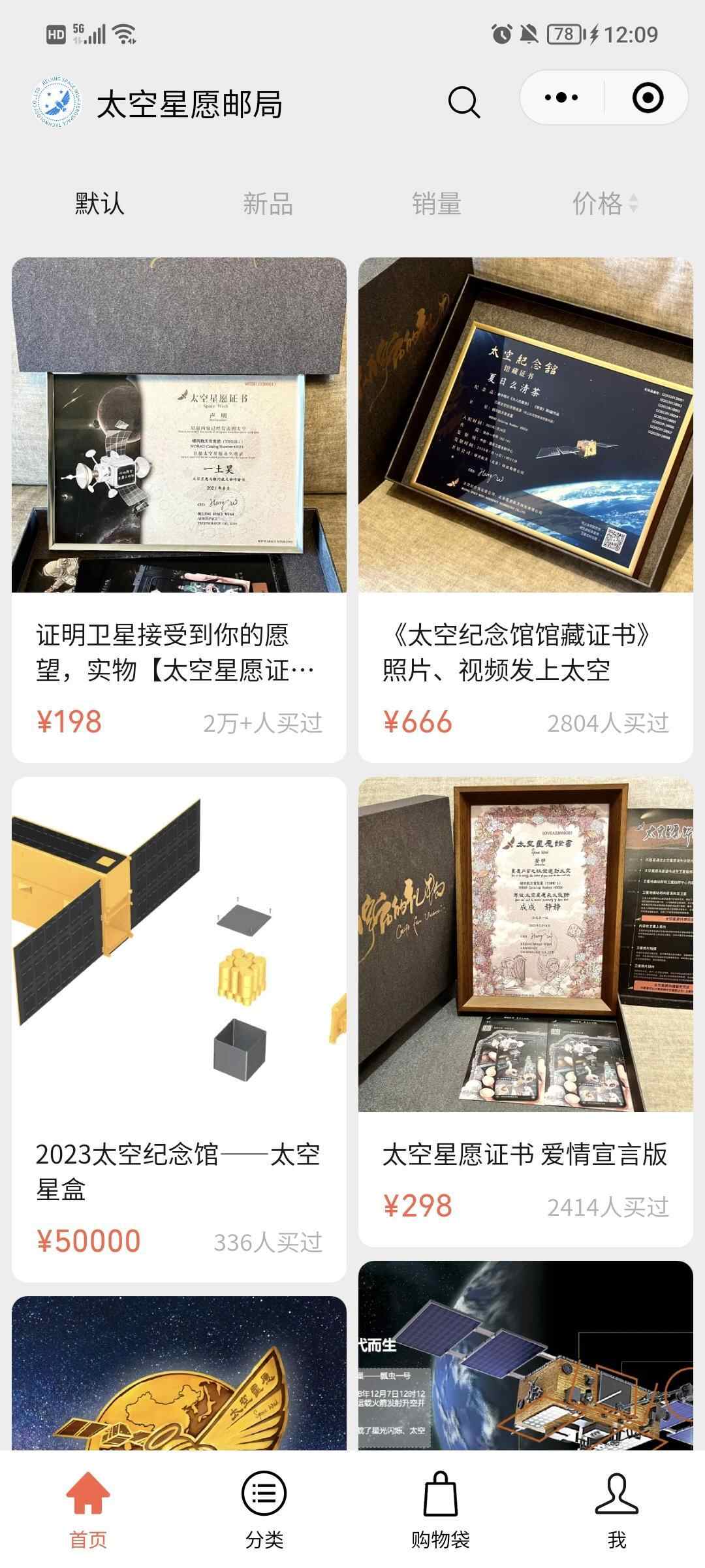 此外,“太空星愿”电子项目价格较低,售价198元,已有2万多人购买,证书显示“你的星愿内容已发送到太空”。
