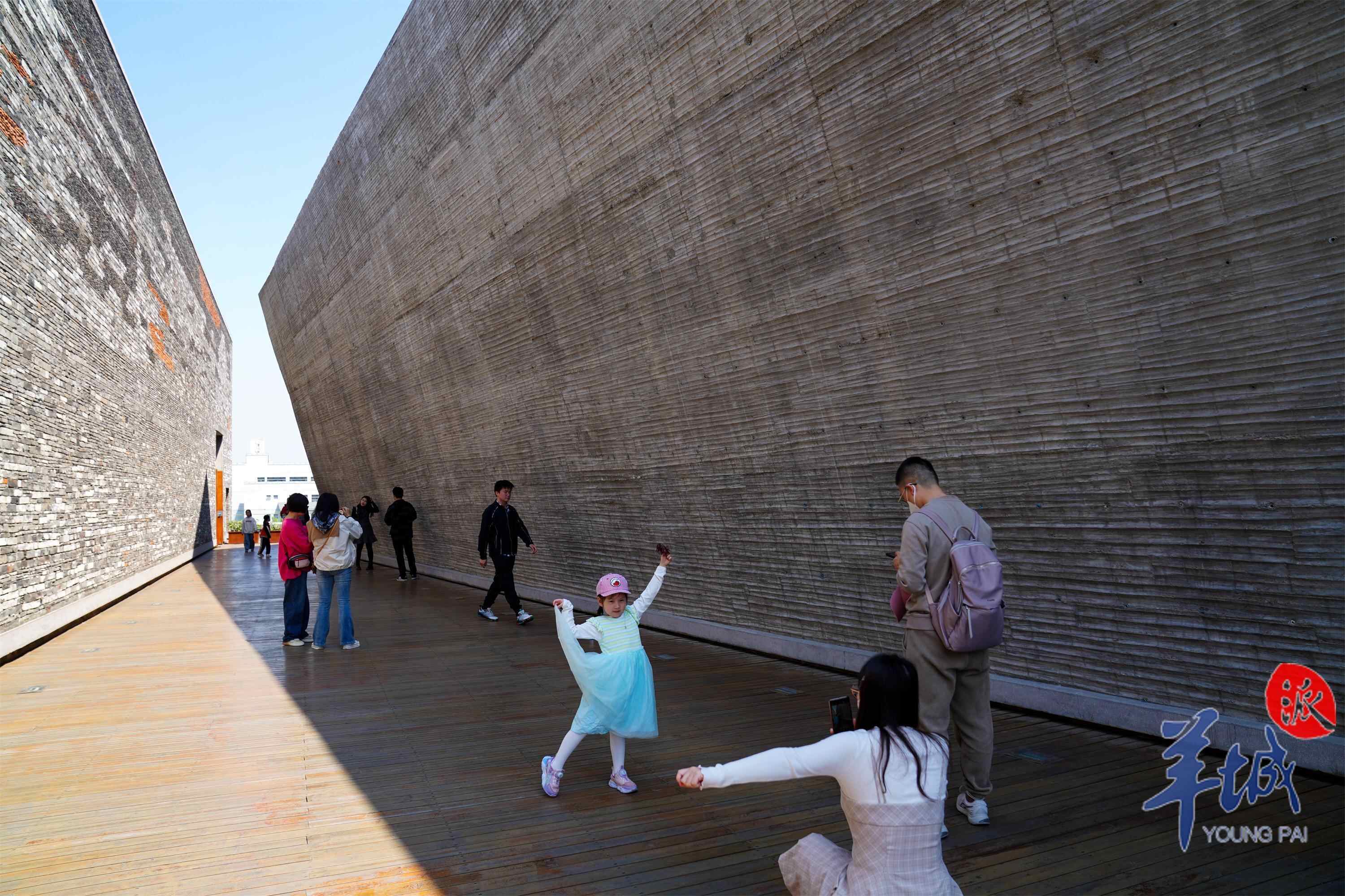 我在周末的清晨抵达,成群的小鸟在瓦爿墙间跳跃,不停鸣叫。一位妈妈带着她的儿子在三楼平台参观,小男孩指着瓦爿墙的空隙说:“妈妈,这是不是就是你说的,小时候可以在里面抓到蜜蜂的地方?”