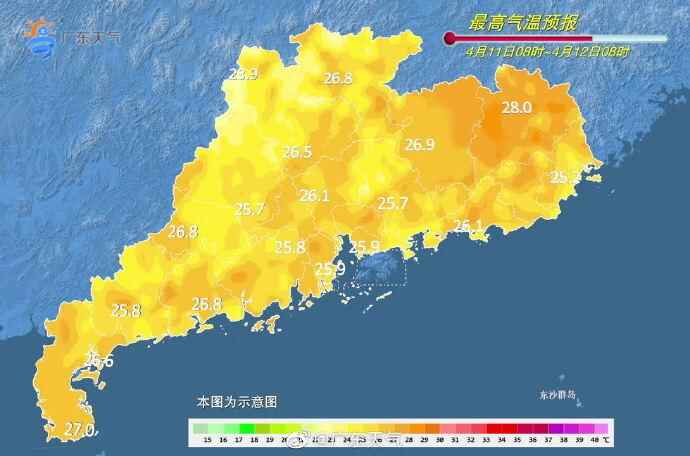 @广东天气 预计,11日夜间有弱冷空气渗透影响粤北,阵雨趋多,其余地区多云到阴天为主,偶有分散阵雨,粤北粤东气温小幅下降。