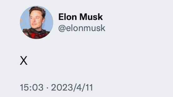 早在当地时间4月11日,马斯克发布一则推文(上图),内容只有一个字母:X。到目前为止,这条推文是马斯克关于这一变化的唯一公开声明。
