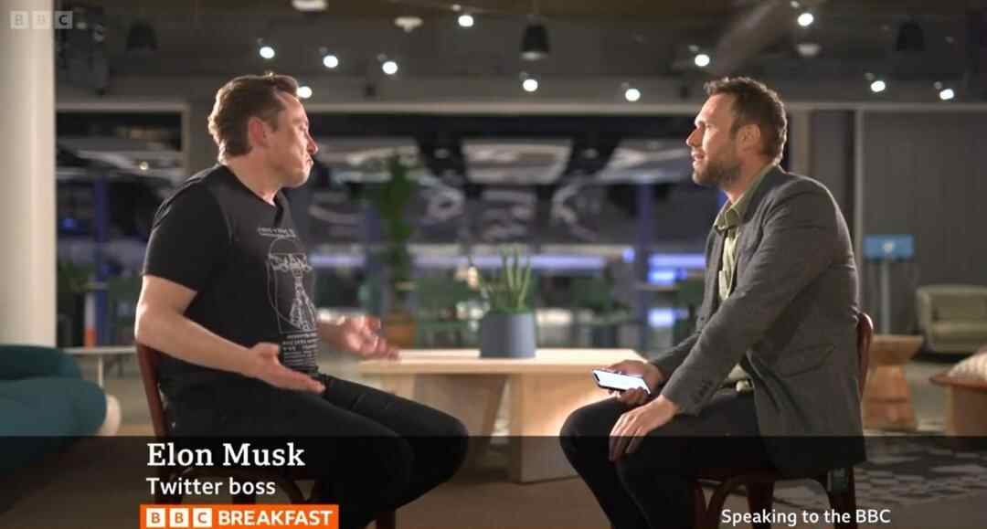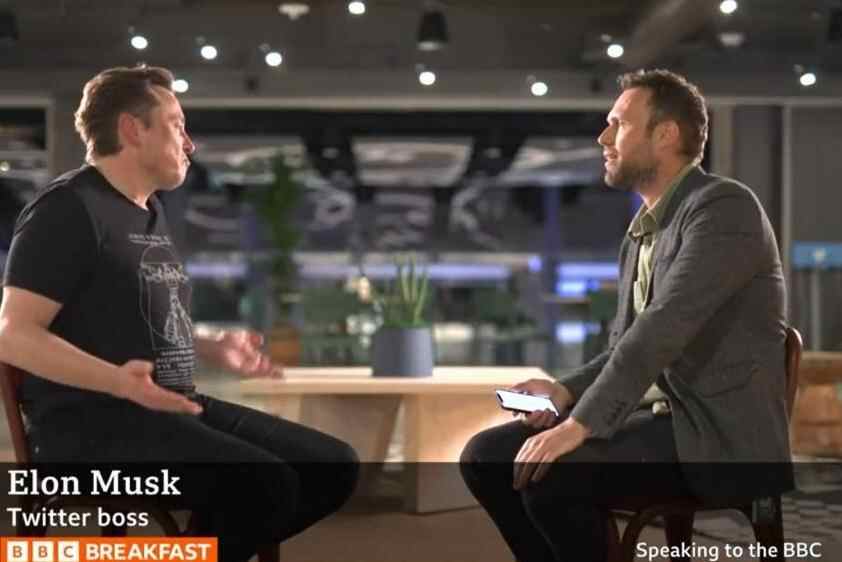4月12日,马斯克发推文说:“我跟BBC说他们可以来推特,没想到他们真的就派记者来了。”
