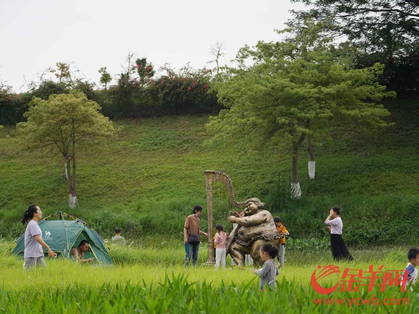 南岗河沿岸90%以上都是生态驳岸,两岸绿树成荫,植被茂盛,形成一条天然的生态廊道。本次音乐会举办的南岗河农业园段规划为田园型河流,目前已进行了滨河生态营地、农耕科普花田、亲水平台、过水步道等设计改造,呈现出一番岭南水乡美丽田园的景象,成为远近居民平日游乐的好去处。