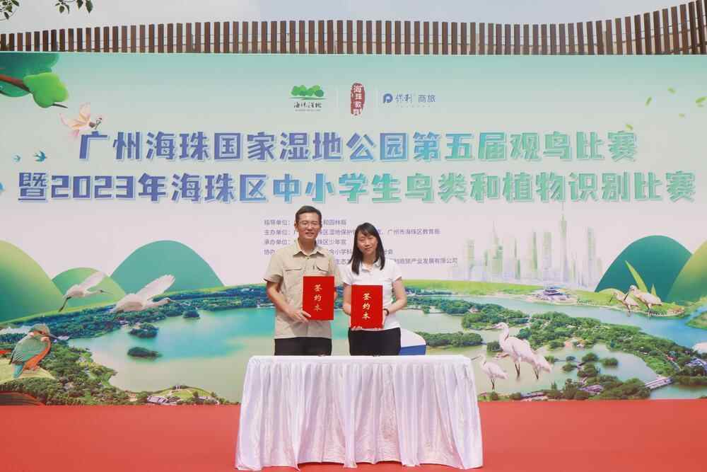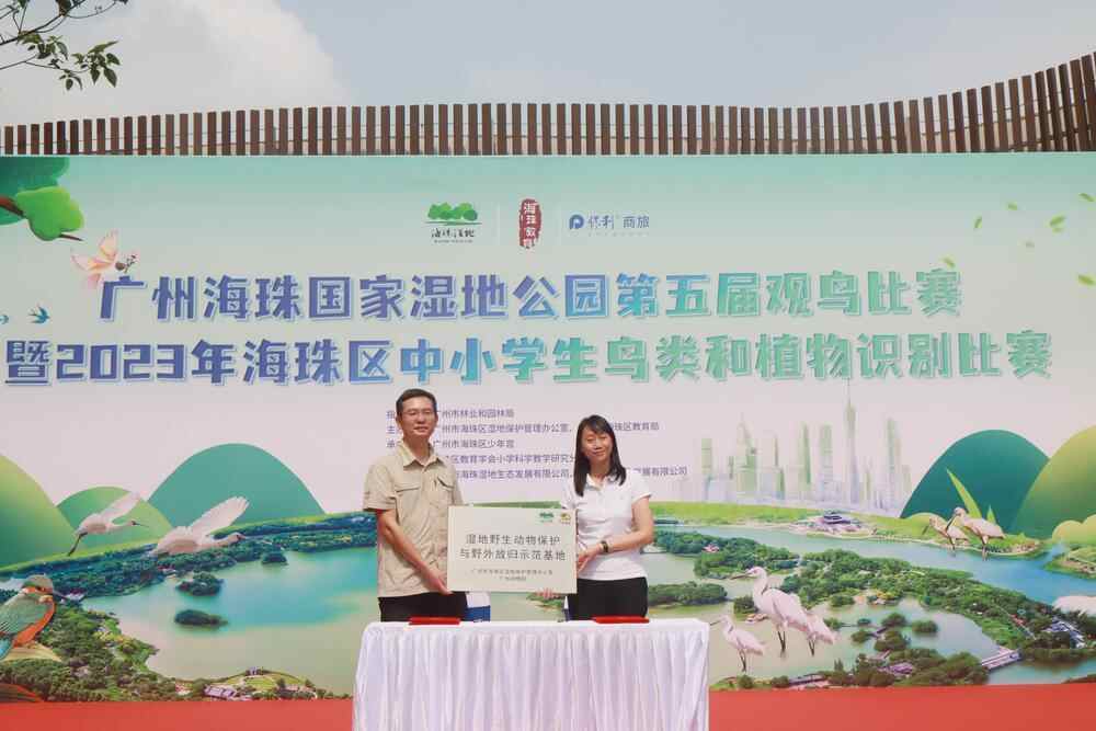 活动现场同步举办了海珠湿地和广州动物园签约与授牌仪式,未来双方共建“湿地野生动物保护与野外放归示范基地”。双方充分利用和发掘在各自领域的优势资源,就共建“湿地野生动物保护与野外放归示范基地”在珍稀野生动物野外种群的复壮、湿地生态恢复、野生动物疫源疫病监测与预警、自然教育、生物多样性论坛、品牌宣传等领域开展各项合作事宜,形成强大合力,共同促进广州市生物多样性森林城市与广州城市生态建设高质量发展。