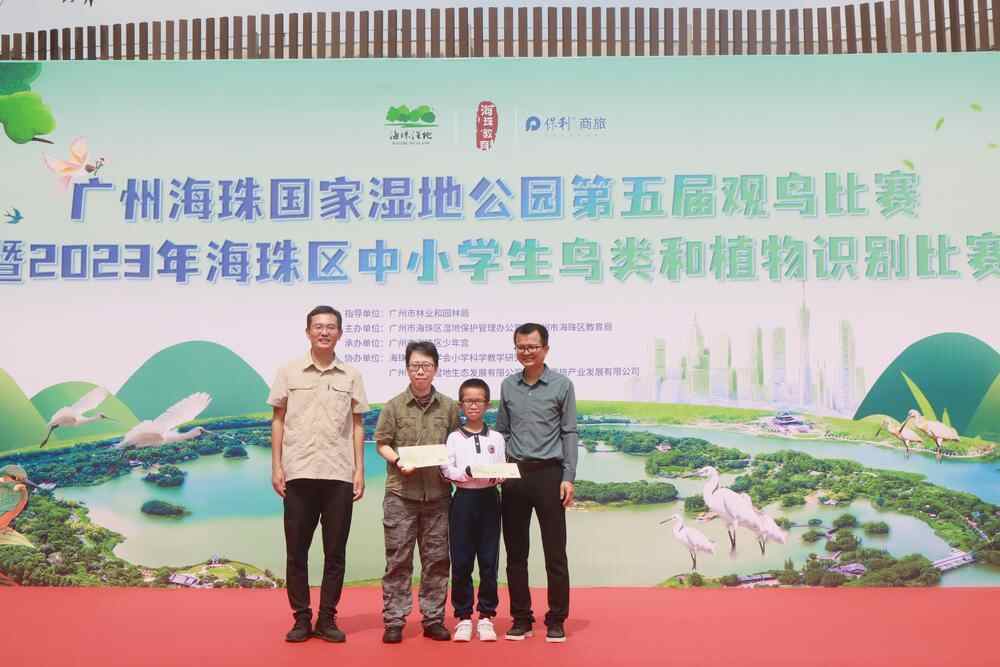 比赛的最后,现场还公布了一个振奋人心的好消息,那就是继四月初晓港湾小学五年级学生陈书涵在海珠湿地二期发现湿地第188种鸟“彩鹬”之后。来自华南碧桂园小学的郭学治同学在比赛中发现了湿地第189种鸟“黄头鹡鸰”。至此,海珠湿地记录鸟类种数更新为189种。