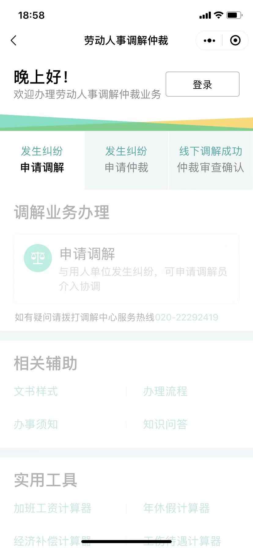 除了在线申请调解仲裁,当事人还可以查询办案进度和体验各类辅助功能,其中加班工资计算器、年休假计算器、经济补偿计算器、工伤待遇计算器等功能,解决了很多当事人的计算难题。