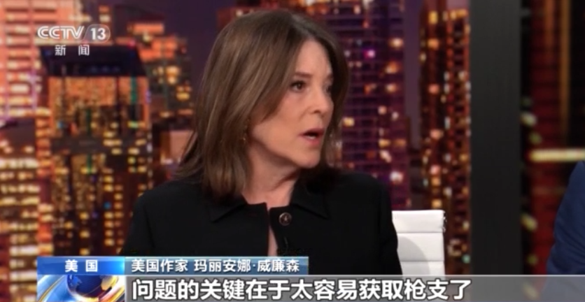 美国作家 玛丽安娜·威廉森:我想大家都知道,问题的关键在于太容易获取枪支了,我们的社会中枪比人多。
