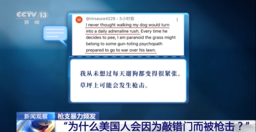 有网友表达了自己的担忧,“我从未想过每天遛狗都变得很紧张。”这位网友担心,遛狗的草坪会随时变成枪击现场。 还有不少网友表示,“在美国已经不安全了。”