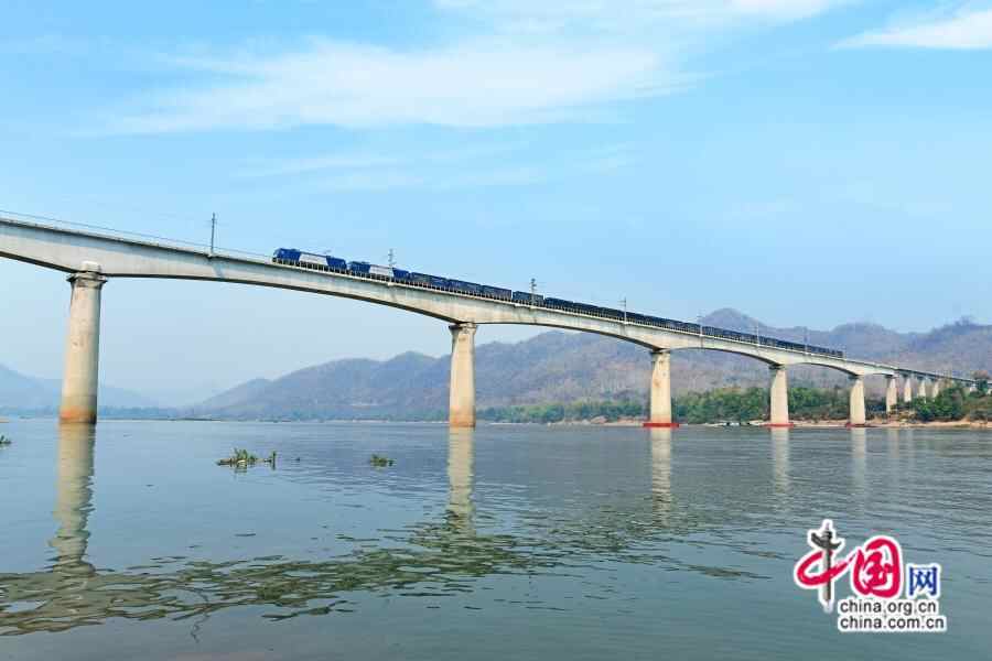 资料图:澜沧号”驶过中老铁路琅勃拉邦跨湄公河特大桥。(中国网发 国铁集团供图)
