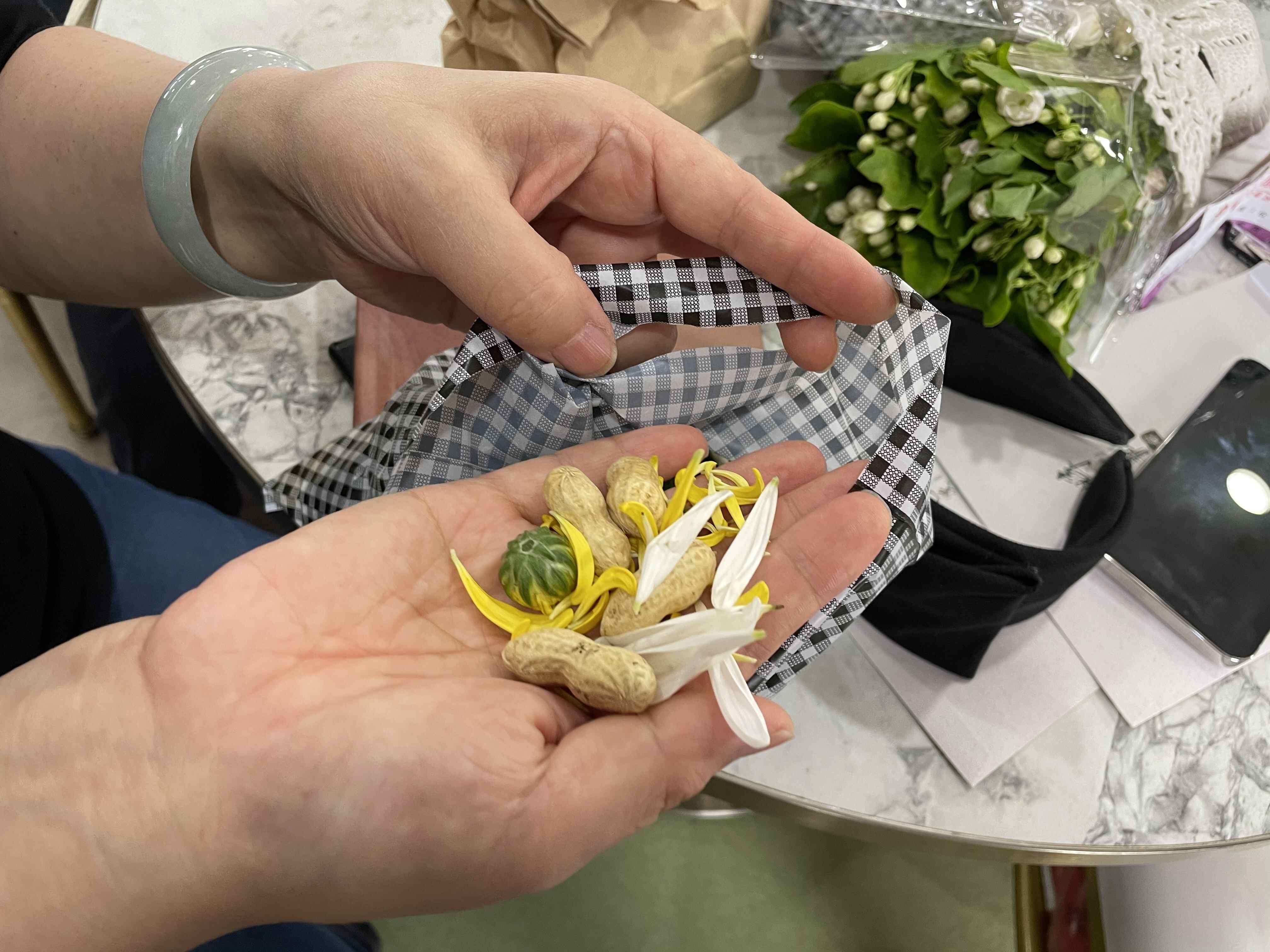 “我的父母很早就决定海葬,今天,我和家人、父亲的学生们一起来送父母最后一程。”桂女士的父亲是著名语言学家、外语教育家桂诗春教授。一个多月前,桂女士整理了一本纪念册,想要给父亲的学生们留个念想,当中既有父母从年轻到退休时的照片、全家福,也有父母与学生的合影。“母亲很喜欢戴着‘光荣在党50年’纪念章的照片,这是我帮她拍的。”翻阅着纪念册,桂女士回忆着父母的点滴往事,这次海葬,大家一起带上了母亲喜欢的茉莉和花生米。