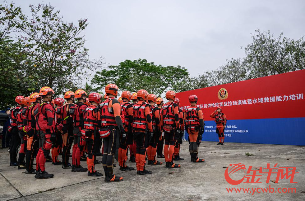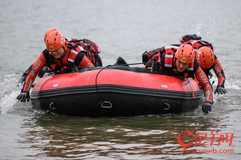 为积极应对汛期各项抢险救援和跨区域增援任务,4月24日至26日,广州市消防救援支队在广东省船艇训练中心开展为期三天的抗洪抢险救援拉动演练暨水域救援能力培训活动。此次演练在全市共调集总队级水域救援专业队50人,支队、大队级专业队215人、40辆消防车、30艘橡皮艇及各种水域救援器材装备2000余件。25日,记者来到现场,直击演练救援全过程。