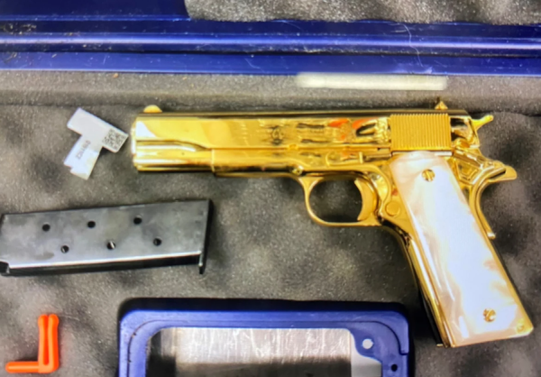 当地时间4月23日,美国一名女子在行李中携带一把24克拉的镀金“黄金手枪”入境澳大利亚,在抵达悉尼机场后被捕。