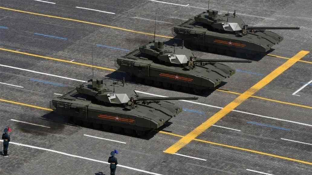 T-14是俄罗斯最新一代的主战坦克。坦克的侧翼配备了额外的保护装置,还有一个无人炮塔,机组人员可以从“位于坦克前部的一个独立装甲舱”远程控制武器。据此前报道,T-14坦克于2015年首次亮相,最高时速为每小时80公里。