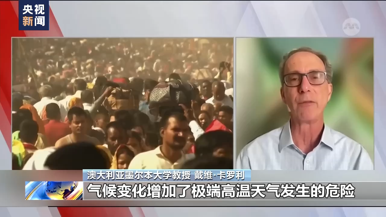 澳大利亚墨尔本大学教授 戴维·卡罗利:气候变化增加了极端高温天气发生的危险,使得热浪侵袭更加频繁,更加剧烈。