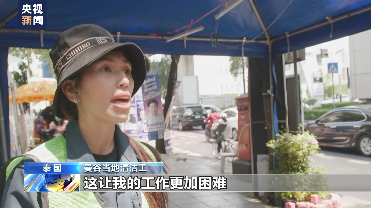 曼谷当地清洁工:今年热得非同寻常,比往年任何一年都热,这让我的工作更加困难。我觉得我随时都可能昏倒,因为我的制服很厚,天气又热,而我必须清扫相当长的路。