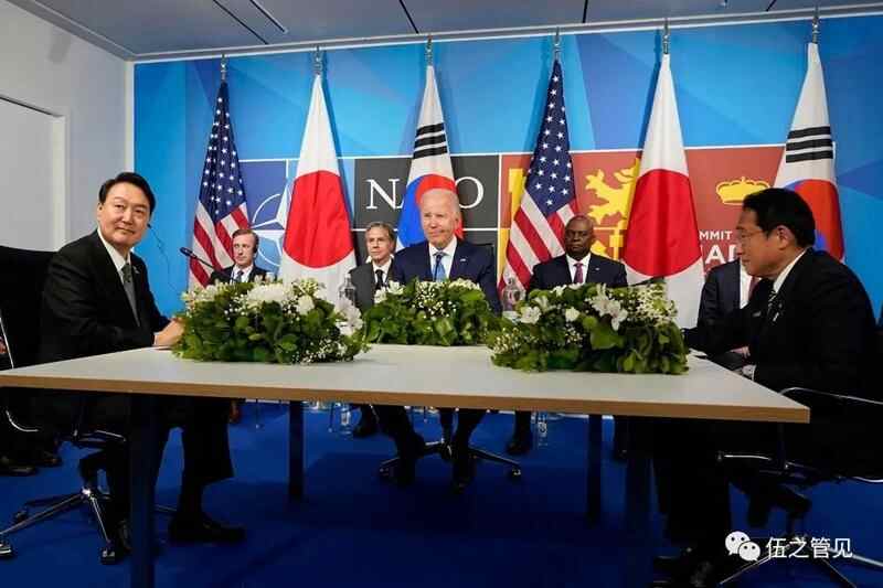 作为保守派代言人的尹锡悦上台,给了美国机会。韩国保守派一贯主张与美国深度捆绑,而此君更是推崇“价值观外交”,在对外关系和国际事务中以所谓价值观划线。对俄乌冲突,视之为“威权主义阵营VS自由民主阵营”;对日本,称之为“与韩国共享普世价值,在安全、经济和全球议程上携手合作的伙伴”。