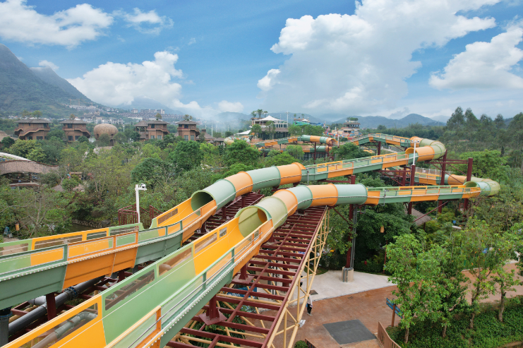 此次开园与去年试运营阶段相比,最大的亮点就是更丰富更全面的游乐体验。4.26日正式开园后,此前未开放的室外水乐园正式上线营业,游客们不仅可以游玩到包含水上过山车在内的全部玩水设备,巨洪峡、缤纷水屋及大喇叭、漂流河、海盗湾、水域迷城、海神魔力碗、尖峰极速等30+水上游玩项目也再度回归,在炫酷的水上演艺和水上运动的加持下,开启你的夏日水上狂欢。各区餐饮、玩水装备、道具商店应有尽有,园区内还新增了高压电动水枪自助租赁机,满足大小朋友轻松打水仗的需求,为游客提供更好的玩水互动体验。你可以躺在椰林中欣赏碧浪白沙,在天阳湖游船、乘桨板冲浪,在乐水一号深潜、浮潜,在捉鱼摸虾区和孩子们一起找回小时候的快乐,在林间树屋区体验大大小小20多个特色温泉泡池,在肆意玩水和自然的治愈中忘记烦恼,返璞归真。