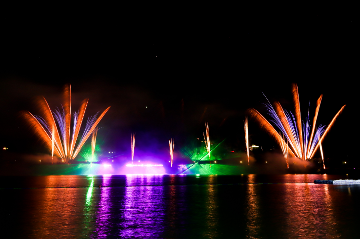 夜幕降临后,好戏才刚刚登场。国内首场海上花火大会将在乐园内美丽的天阳湖上演绎,璀璨绝美的烟花浪漫开绽,朵朵金花飞上天空,绽放的瞬间照亮天际也照亮了每位游客的笑脸。搭配上湖上绚丽多彩的激光秀,夜晚的森林海秒变浪漫奇幻的童话世界。许多人在烟花下许愿,情侣们在烟花下相拥,幸福快乐溢满森林海。为了办好这场森林海上花火大会,森林海特地选用了世博会、奥运会烟花供应商研发、设计、生产的烟花,确保花火大会的效果和安全性。