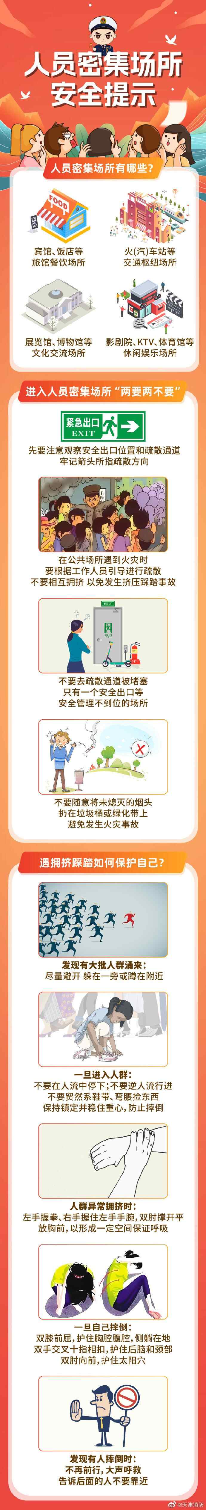 “最火”五一即将开启,出行人数增多,大家在享受假期的同时,别忘了注意安全。进入商场、宾馆、酒店等公众聚集场所时,要留意安全出口的位置。
