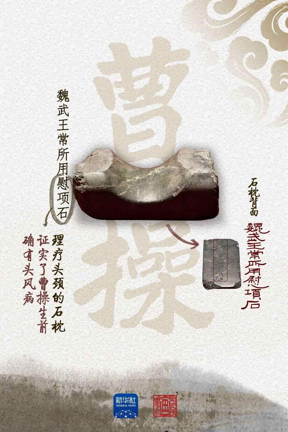还有一块“魏武王常所用慰项石”,与史籍记载相吻合,证实了曹操生前确患有头风病。《后汉书·华佗传》称,“操积苦头风眩”。专家推测,该石枕经过加热后,可以起到舒缓头疼的作用。