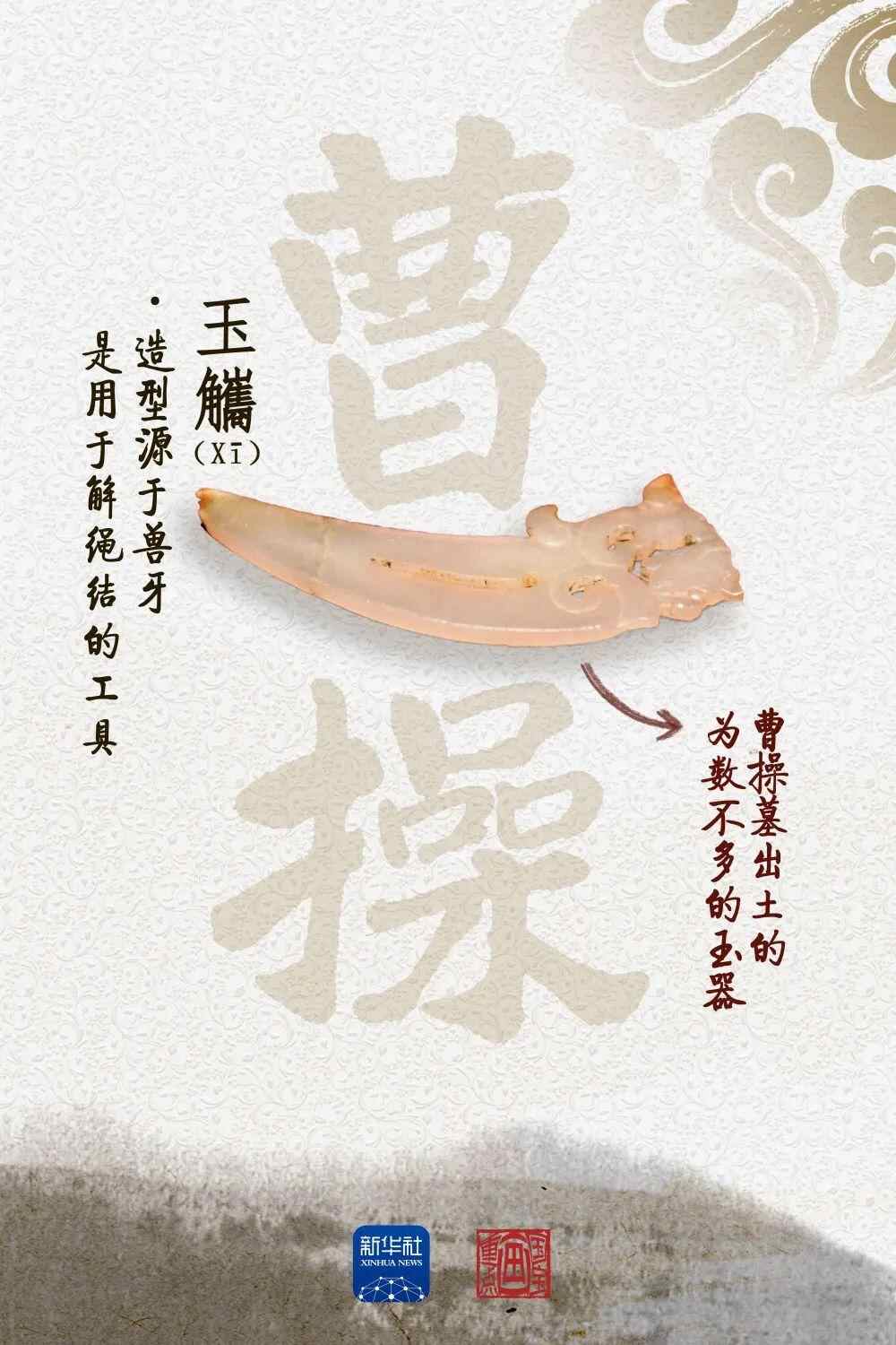 此外,一件造型源于兽牙的玉觿,专家根据其明显的使用痕迹推测,亦应为曹操常用物件。玉觿原是用于解绳结的工具,后逐渐变为礼器,由“解绳”之意引申象征“排忧解难”。(更多新闻资讯,请关注羊城派 pai.ycwb.com)