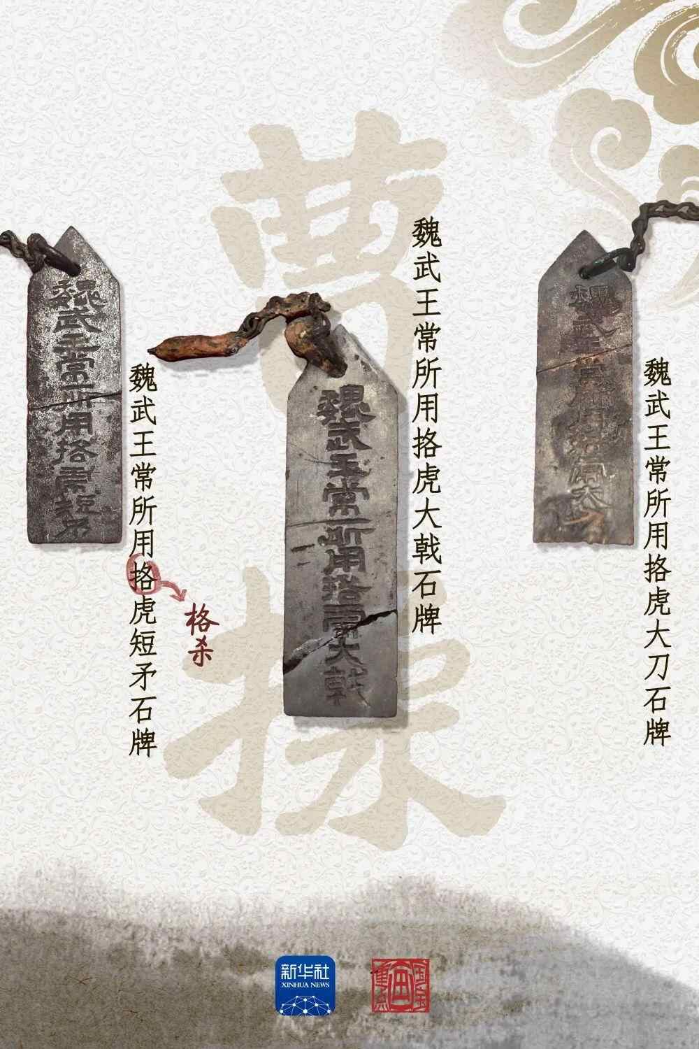 展出的文物中,刻有“魏武王常所用挌虎大戟”“魏武王常所用挌虎大刀”“魏武王常所用挌虎短矛”字样的三块石牌十分瞩目,只因它们最能证明曹操身份。