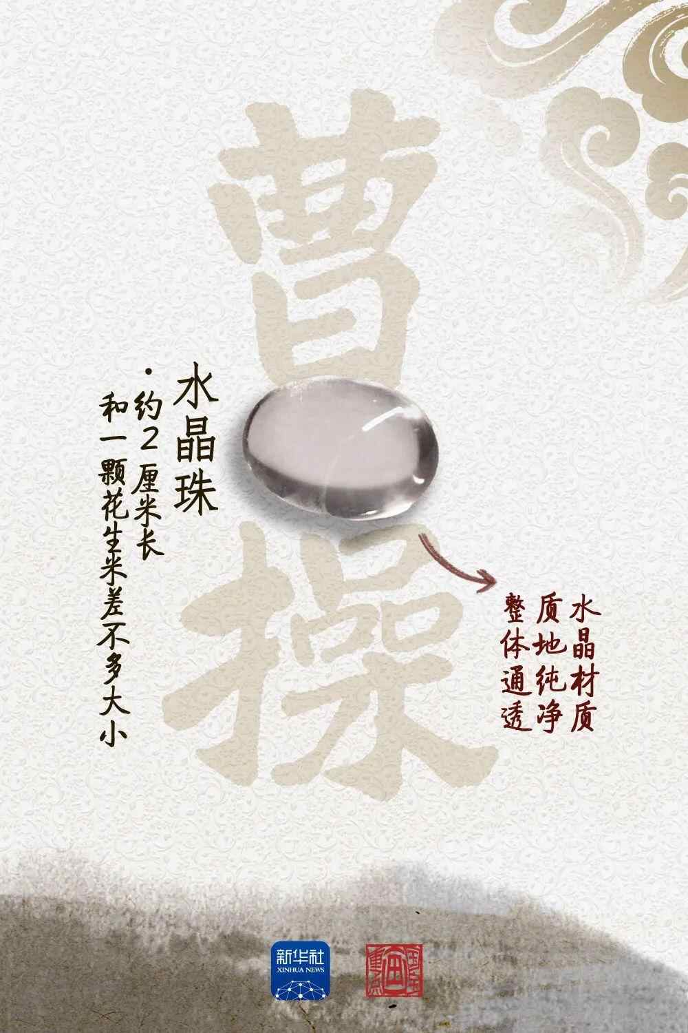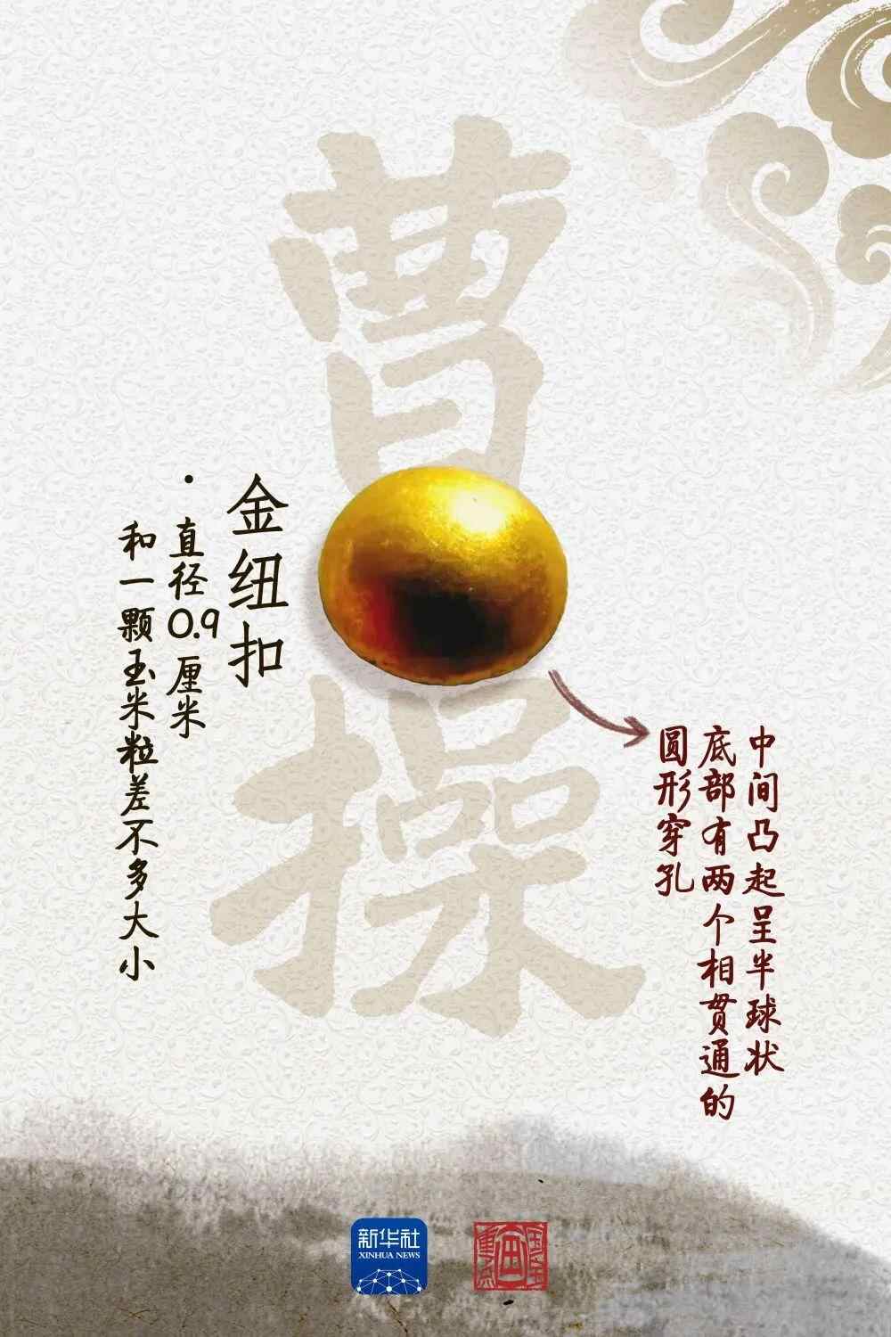 史料记载,曹操践行薄葬,他的陪葬品多为陶器,仅有极少量的金银玉器。但本次展览中呈现不少曹操的日常用品中,不仅有石枕、玉佩等,还有疑似内衣扣子的金纽扣、疑似口含珠的水晶珠等。